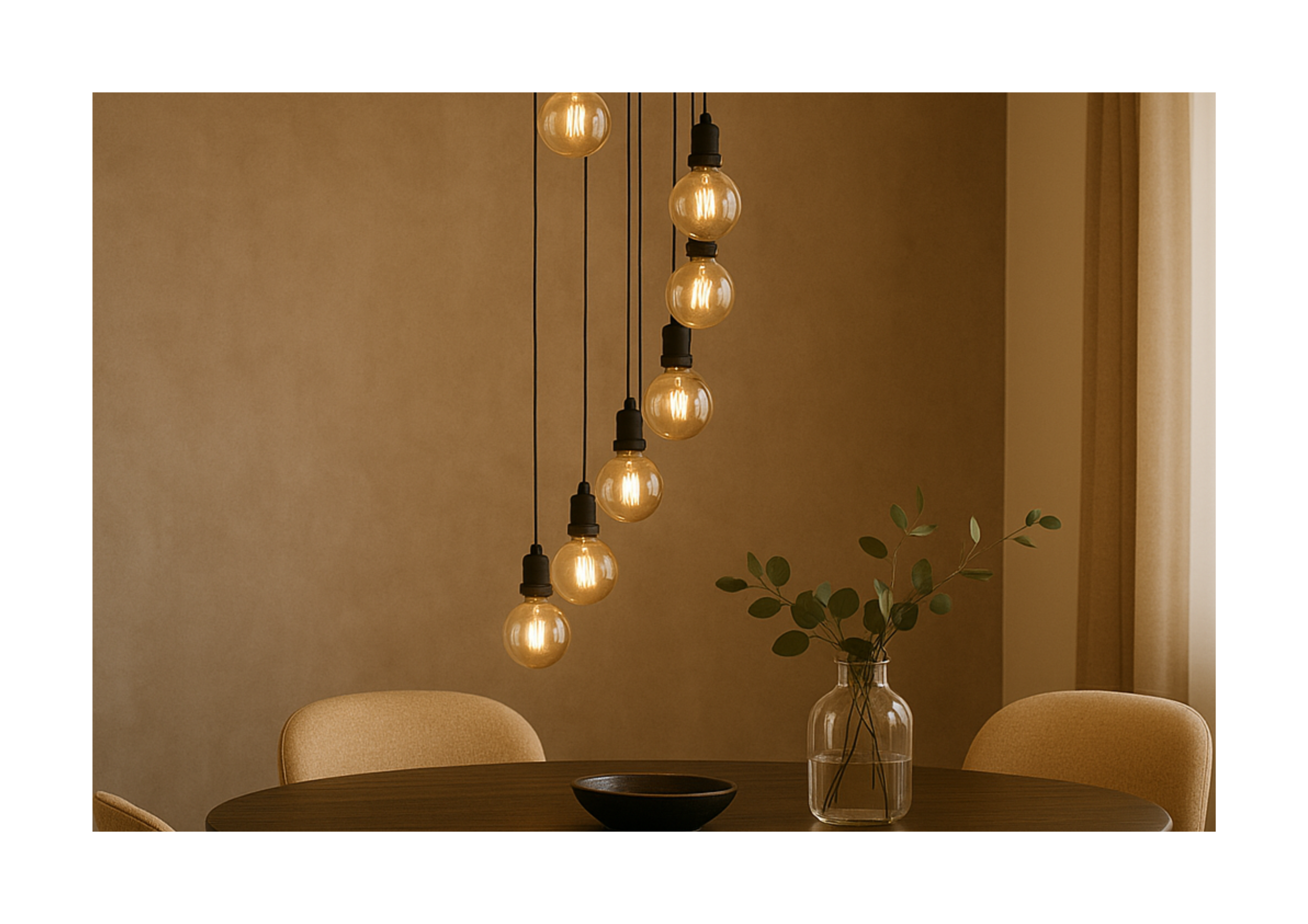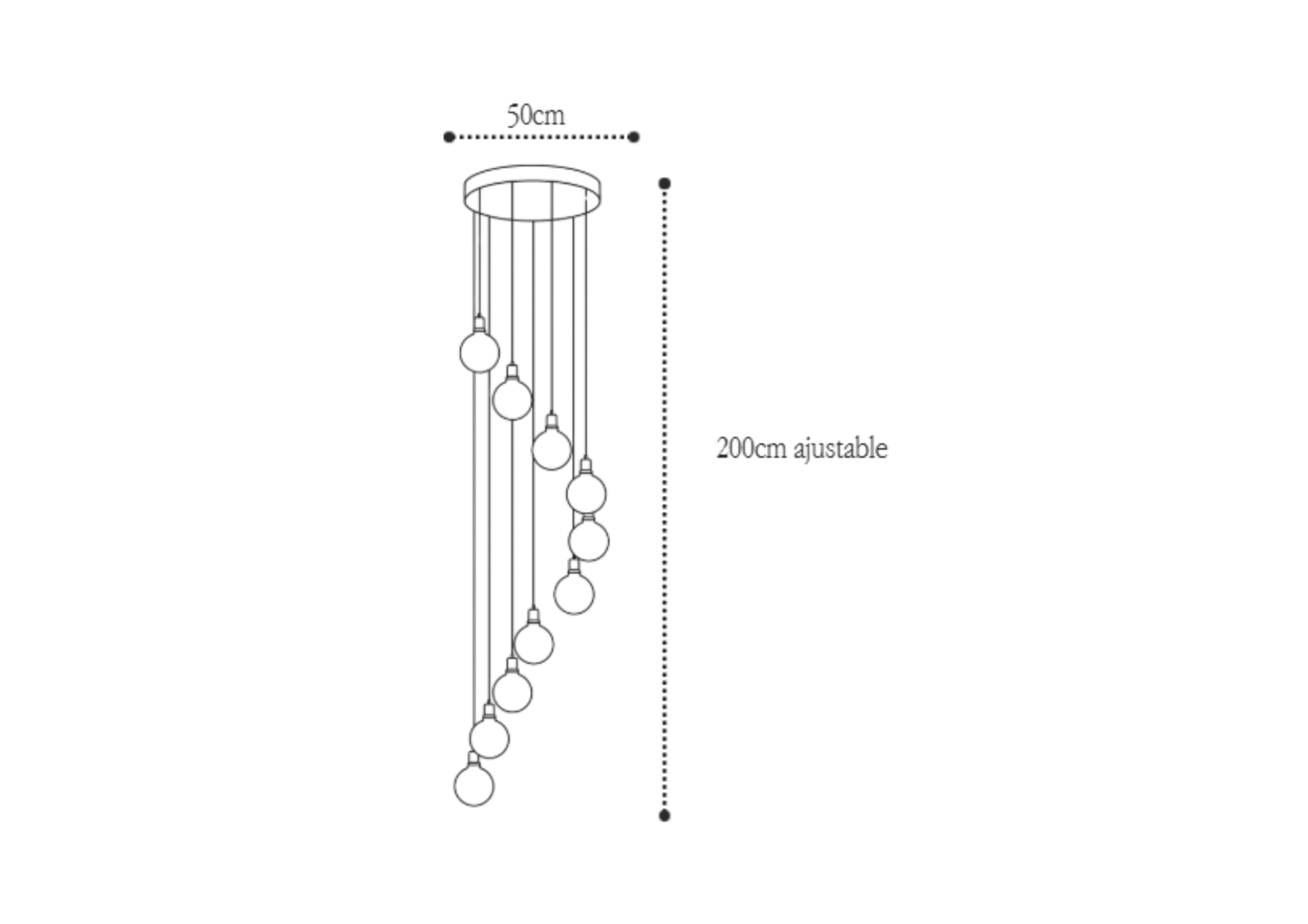DESCRIPCIÓN: Esta lámpara colgante tipo cascada destaca por su diseño moderno y elegante, compuesto por múltiples bombillas suspendidas a diferentes alturas que crean un efecto visual dinámico y sofisticado. Su luz cálida y su composición vertical la convierten en el punto focal perfecto para comedores, salas y espacios con techos altos, aportando un ambiente acogedor y contemporáneo.